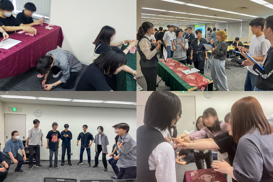 2025年6月、株式会社NVC様をはじめグループ各社の新入社員約80名を対象にフォローアップ研修を実施しました。研修は、ご担当者様の講義に続いて弊社が運営を担当。冒頭は自己紹介とアイスブレイク「みんなであわせまSHOW」で緊張を和らげ、その後は全員協力型の謎解き脱出ゲーム「謎パ」に挑戦しました。