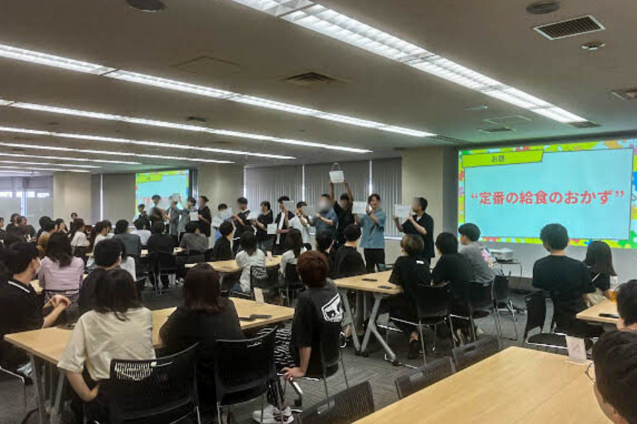 今回は、初対面に近い参加者が多かったため、まずは自己紹介とアイスブレイク「みんなであわせまSHOW」を実施しました。「みんなであわせまSHOW」は、全チームの回答を揃えることを目的としたアイスブレイクゲームです。お題は「定番の給食のおかず」。チームで話し合った後、代表者が前に出て回答を披露します。
