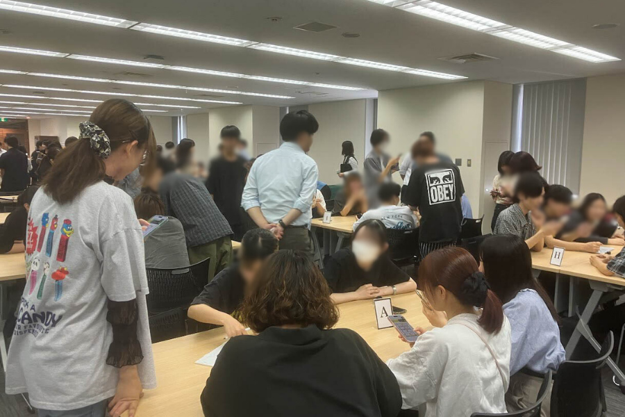 ミッションには、部署が異なる参加者同士でも円滑にコミュニケーションが取れる仕掛けを用意しています。例えば「異なる3企業の同じ血液型の人を10人集め、全員で報告所に向かおう」「異なる企業の同じ趣味を持つ人10人集め、10人全員で報告所に向かおう」といった内容です。会場内を移動しながら声を掛け合う必要があり、初対面の相手にも積極的に話しかける様子が見られました。