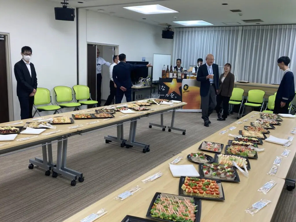 懇親会のお料理はIKUSAが提供するフードデリバリーサービス「ビジメシオードブル」の「デラックスイタリアンプラン」をご用意。ドリンクバーも設置し、リラックスした雰囲気で交流していただきました。