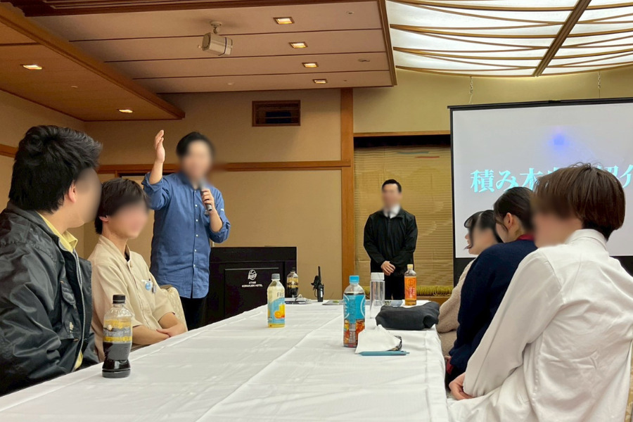 研修の冒頭ではアイスブレイクとして、受講者同士の緊張をほぐし、お互いの意外な共通点を発見するための「積み木自己紹介」を実施しました。これは、前の人の自己紹介内容を復唱してから自分の紹介を付け加えていく、記憶ゲームのような要素のある自己紹介です。