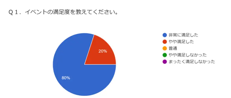 今回実施したイベントの満足度について「非常に満足した」「やや満足した」とお答えいただいたお客様の割合がなんと100%でした!