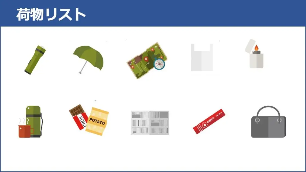 上記がそのアイテムリストです。この中には、一見何に使うか分からないものでも、実は大活躍するアイテムもあります。また、このゲームは防災の研究を行う専門家が監修したものなので、実際の生活で役に立つ防災知識を身につけられます!